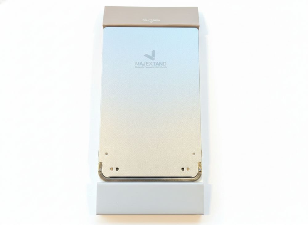 ただ、手元で首をしたにして観るのがなんかしんどい。良いスマホスタンドないかな、と思いついたのが昔、購入した「Majextand M・人間工学に基づくスマートフォン/タブレット用スタンド (シルバー)」